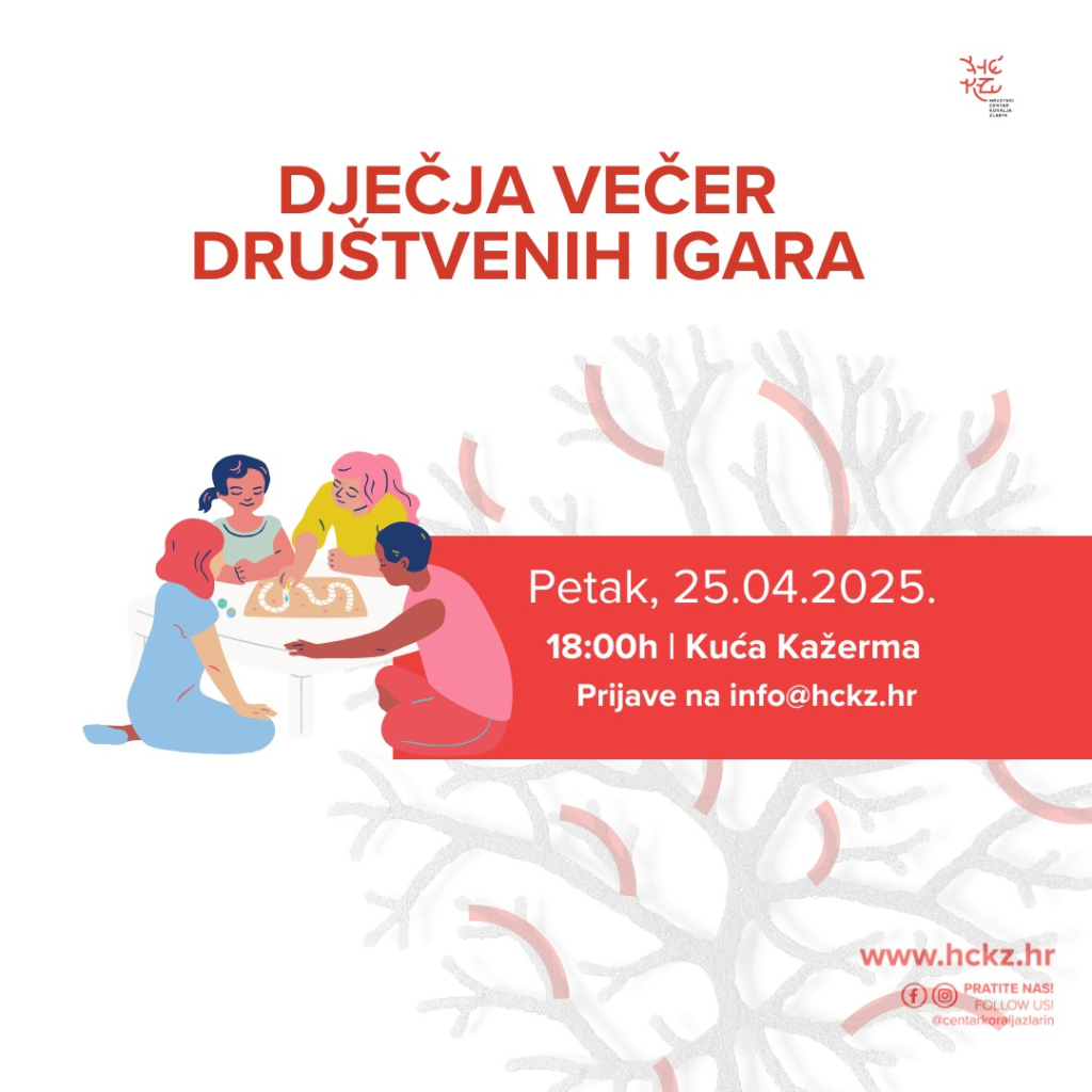 Draga djeco pozivamo Vas u petak 25.4.2025. s početkom u 18:00 h da nam se pridružite na večeri dječjih društvenih igara.
