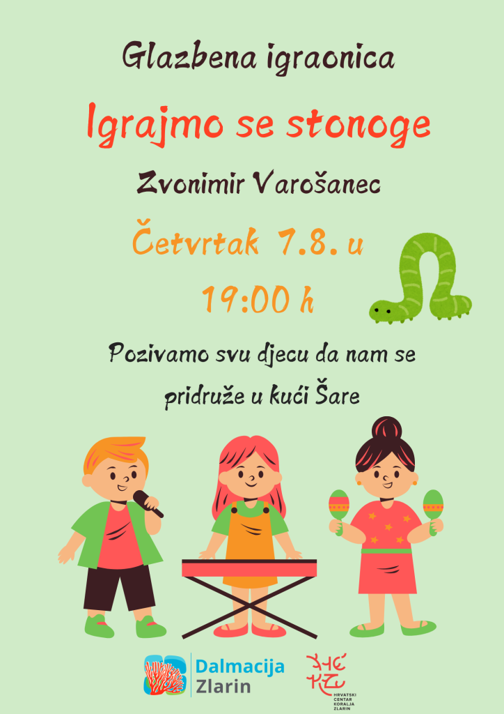 Pozivamo svu djecu i roditelje na glazbenu igraonicu pod vodstvom Zvonimira Varošanca po nazivom “Igrajmo se stonoge”.