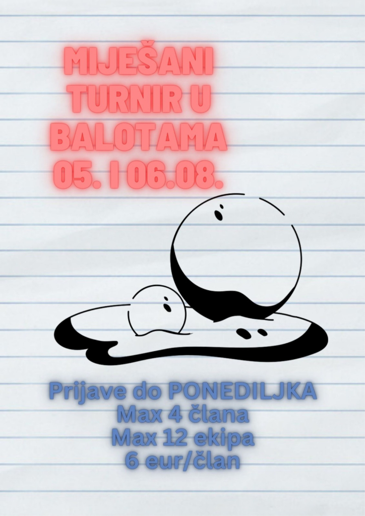 Pozivamo Vas sve na miješani turnir u balotama koji će se održati na Fingacu 05. i 06.08.2025.