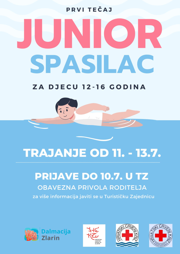 Pozivamo svu djecu od 12 – 16 godina da se prijave na tečaj Junior Spasilac. Tečaj će trajati 0d 11.-13. srpnja.