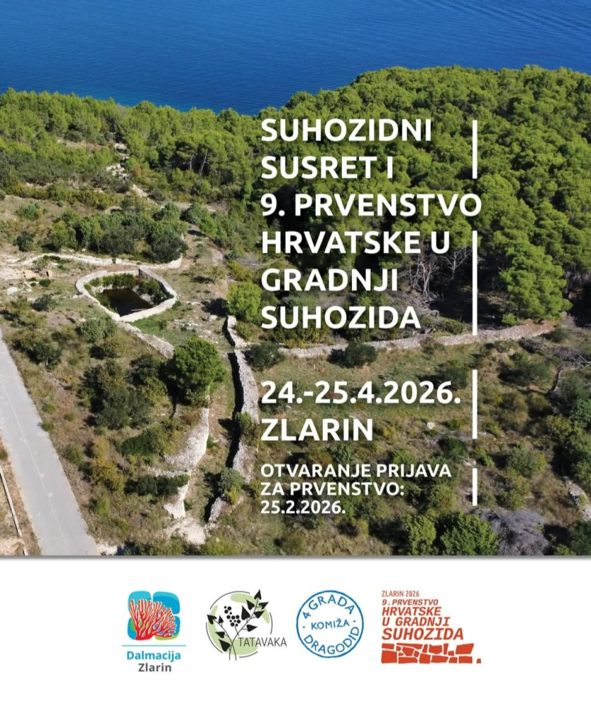 U organizaciji udruge Tatavaka i Dragodida, uz domaćinstvo Turističke zajednice mjesta Zlarin 24. i 25. 4. 2026. pozivamo sve zaljubljenike u suhozidnu baštinu – iskusne graditelje i one koji žele naučiti više da sastave ekipe i prijave se!