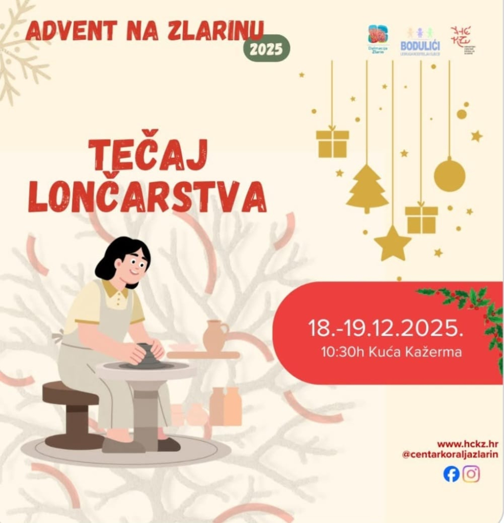Pridružite nam se u četvrtak 18. i petak 19.12.2025. s početkom u 10:30 h na tečaju lončarstva u kući Kažerma.