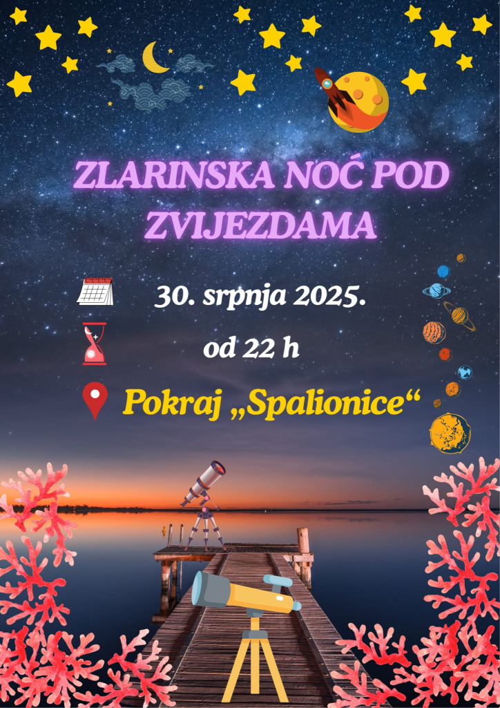 Pozivamo Vas sve da nam se pridružite na jedinstvenom događaju teleskopskog promatranja Zlarina pod zvijezdama u srijedu 30.7.2025.