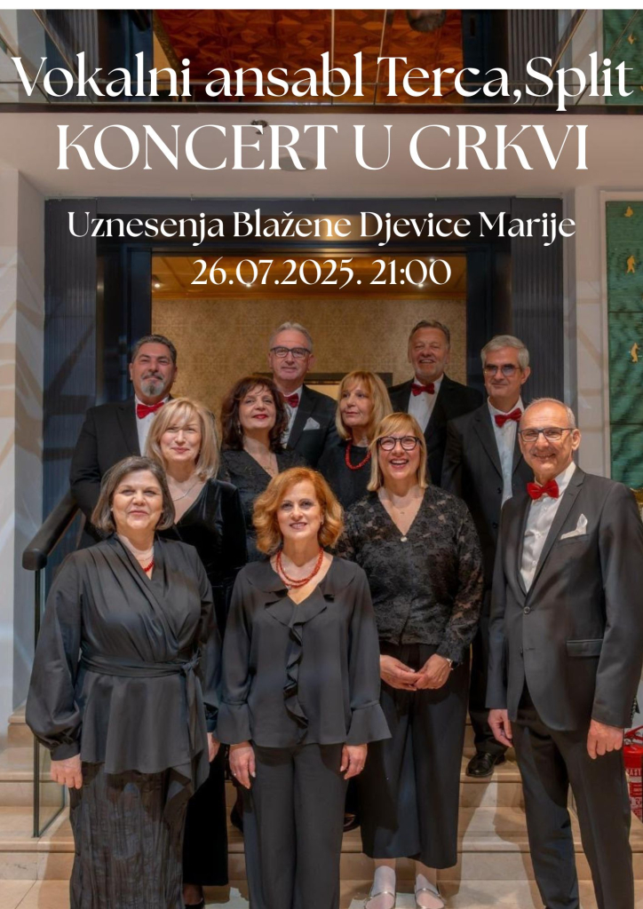 Pozivamo vas sve na koncert vokalnog ansambla Terca u subotu 26.7. s početkom u 21:00 h u Crkvi Uznesenja Marijina.
